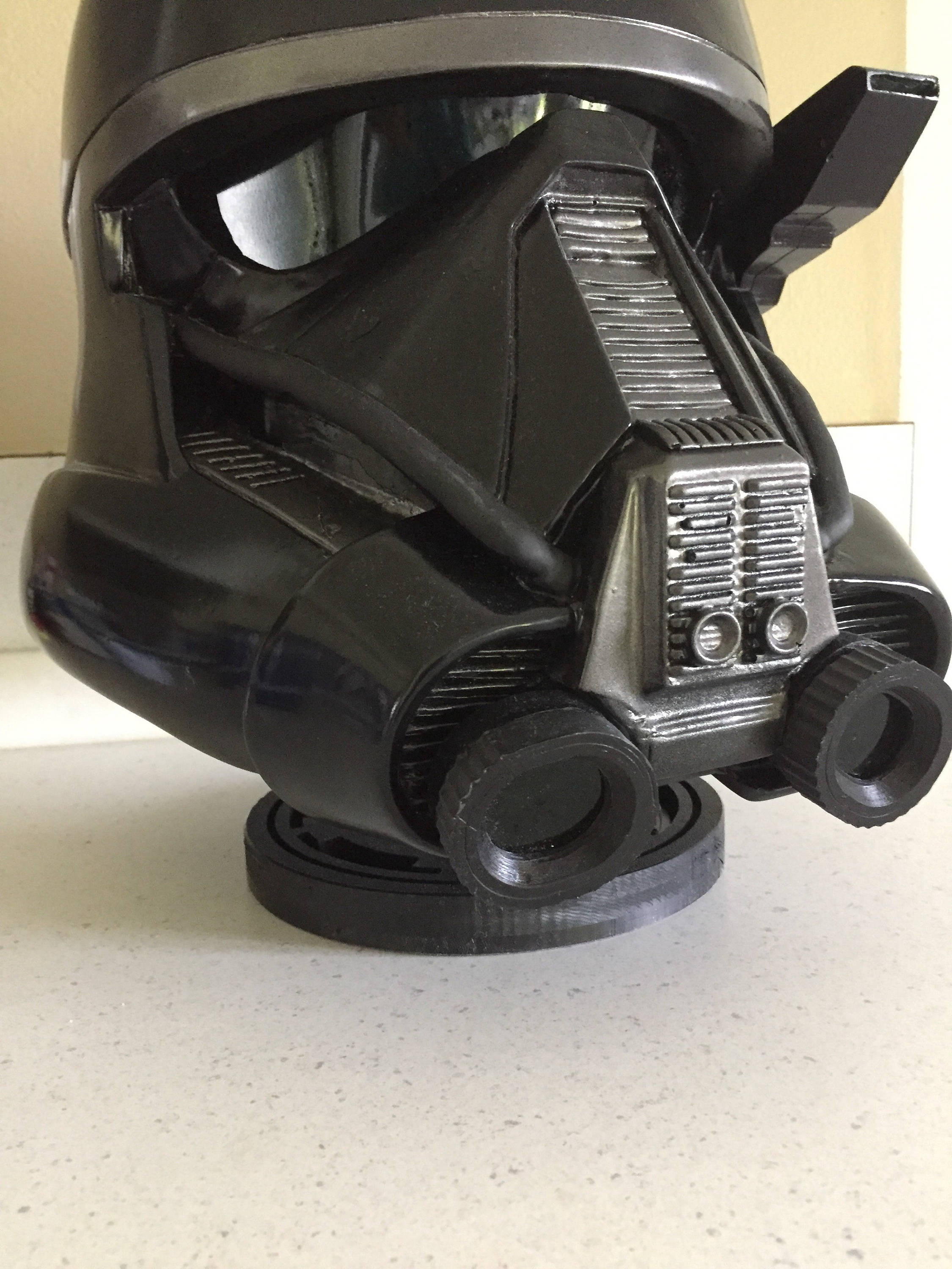 Heavy duty helmet stand CNC cut from HDPE plastic board with a logo in the base. Choose Galactic Republic, Empire, Rebels. Custom made so please allow up to 3 weeks for delivery.